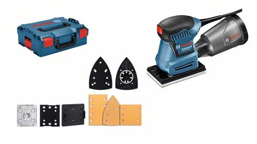 Vibrační bruska GSS 160 Multi, GSS 160 Professional Multi je kompaktní a ergonomická síťová vibrační bruska od firmy Bosch, která je schopná zvládat různé úkoly, včetně broušení v rozích. Ergonomická opěrka dlaně zajišťují snadné a pohodlné ovládání. Součástí jsou tři vyměnitelné podložky, které umožňují práci na okrajích a v rozích i na menších plochých površích. Nádoba na prach je osazena vestavěným mikrofiltračním systémem Bosch zajišťujícím efektivní odsávání prachu pro prakticky bezprašnou práci. Tato vibrační bruska je určena na mezibroušení, dokončování povrchů a broušení v rozích a na menších plochých površích. Lze použít na dřevo, dýhu, lak, plniva i minerály a akryl. Je kompatibilní se systémem Bosch Click & Clean. GSS 160 Professional Multi obsahuje též upínací systém se suchým zipem na připevnění brusného papíru a díky svému designu umožňuje používání jednou rukou. L-BOXX 136 (1 600 A01 2G0); Vložka pro L-BOXX; Děrovací nástroj (2 608 190 059); Šroubovák; Box na prach (2 605 411 240) vč. mikrofiltru (2 605 411 241); 1× brusný list C470, Best for Wood + Paint, 120 (dostupný samostatně jako sada 10 ks: 2 608 607 232); 1× brusný list C470, Best for Wood + Paint, 120 (dostupný samostatně jako sada 10 ks: 2 608 607 458); 1× brusný list C470, Best for Wood + Paint, 120 (dostupný samostatně jako sada 10 ks: 2 608 608 Z96); Základní trojúhelníková deska, 100 × 150 mm (2 608 601 448) s brusnou deskou (2 608 601 445); Základní deska, 113 × 101 mm (2 608 601 446) s brusnou deskou (2 608 601 443); Základní deska, 80 × 130 mm (2 608 601 447) s brusnou deskou (2 608 601 444)