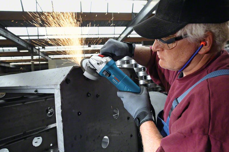 Úhlová bruska GWS 9-115; 900 W pro náročné úkoly!; Špičková výkonnost při broušení a řezání díky vysokému výkonu a točivému momentu 900W motoru; Špičková ovladatelnost ve své třídě díky ideální velikosti rukojeti a ergonomickému designu; Dlouhá životnost při těžším pracovním nasazení a větším objemu činnosti díky robustní konstrukci a dílům; Přídavná rukojeť; Ochranný kryt (1 619 P06 547); Klíč na šrouby; Kartonový box