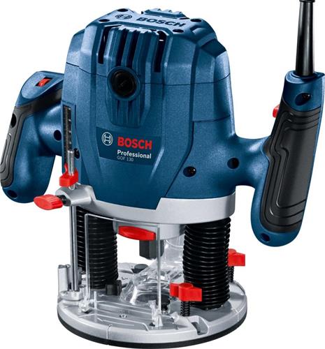 Horní frézka GOF 130, Vynikající novinka pro všechny truhláře – horní frézka GOF 130 Professional od firmy Bosch nabízí zvýšení efektivity pro veškeré druhy frézování díky funkci Constant Speed Feature a vynikající výkonnosti motoru. Ať již s tvrdým nebo měkkým dřevem, dřevovláknitými deskami či dřevotřískou – veškeré práce zvládnete bleskurychle. Funkce Constant Speed od firmy Bosch zaručuje práci bez zastavování a bez záseků a zajišťuje ve své třídě maximální efektivitu řezání. Její inovativní ponorný design minimalizuje nasávání prachu a předchází zásekům při více než 10 000 použití, zejména v prašném a v náročném prostředí. V neposlední řadě nabízí flexibilní možnosti výměny fréz, a to buď ručně pomocí klíče, nebo prostřednictvím aretace vřetena. Klíč (číslo náhradního dílu 1 600 A02 28G); Boční doraz (číslo náhradního dílu 1 619 PB5 511); Kopírovací objímka (číslo náhradního dílu 1 619 PB5 522); Odsávací adaptér (číslo náhradního dílu 1 619 PB5 521); Středicí kolík (číslo náhradního dílu 1 619 PB5 523); Vodicí kladka (číslo náhradního dílu 1 619 PB5 515); Upínací kleština 8 mm (číslo náhradního dílu 1 619 PB5 490); Upínací kleština 6 mm (číslo náhradního dílu 1 619 PB5 492)