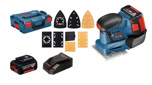Akumulátorová vibrační bruska GSS 18V-10, Kompaktní a šikovná jednoruční akumulátorová vibrační bruska, Akumulátorová vibrační bruska – vhodná do každého rohu, Flexibilní práce v každé situaci díky akumulátoru 18 V, Mikrofiltrační systém Bosch pro efektivní odsávání prachu, L-BOXX 136 (1 600 A01 2G0); Vložka pro L-BOXX; Děrovací nástroj (2 608 190 059); Mikrofiltrační box; Rychlonabíječka AL 1860 CV (2 607 225 322); Šroubovák; 1× brusný list C470, Best for Wood + Paint, 120 (dostupný samostatně jako sada 10 ks: 2 608 607 232); 1× brusný list C470, Best for Wood + Paint, 120 (dostupný samostatně jako sada 10 ks: 2 608 607 458); 1× brusný list C470, Best for Wood + Paint, 120 (dostupný samostatně jako sada 10 ks: 2 608 608 Z96); Základní trojúhelníková deska, 100 × 150 mm (2 608 601 448) s brusnou deskou (2 608 601 445); Základní deska, 113 × 101 mm (2 608 601 446) s brusnou deskou (2 608 601 443); 2× akumulátor GBA 18V 5.0Ah (1 600 A00 2U5); Základní deska, 80 × 130 mm (2 608 601 447) s brusnou deskou (2 608 601 444)