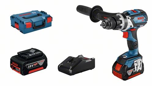 Akumulátorový kombinovaný šroubovák GSB 18V-110 C, Spoj se se svým akumulátorovým kombinovaným šroubovákem, Výkonný: max. krouticí moment 110 Nm a bezuhlíkový motor pro plynulou práci, Robustní: Celokovové sklíčidlo pro nejnáročnější použití na stavbě, KickBack Control a přídavná rukojeť, která snižuje riziko náhlého reakčního momentu v případě záseku, Přídavná rukojeť (1 602 025 07X); 2× akumulátor GBA 18V 5.0Ah (1 600 A00 2U5); Rychlonabíječka GAL 18V-40 Professional (1 600 A01 9RJ); L-BOXX 136 (1 600 A01 2G0)