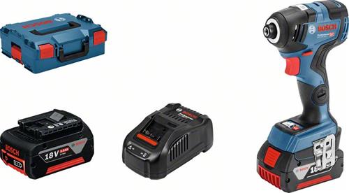 Akumulátorový rázový utahovák GDR 18V-200 C, Vysoký výkon v kompaktním provedení, Vysoký účinek i na obtížně přístupných místech díky nejlepšímu poměru délky hlavy a výkonu, Modul Bluetooth Connectivity pro zpětnou vazbu nářadí, pozvolný rozběh a přístup k servisním informacím pomocí mobilního zařízení, Delší doba chodu a životnost díky bezkartáčovému motoru s elektronickou ochranou (Electronic Motor Protection ? EMP), L-BOXX 136 (1 600 A01 2G0); 2× akumulátor GBA 18V 5.0Ah (1 600 A00 2U5); Rychlonabíječka GAL 1880 CV (1 600 A00 B8G); 1/2 vložka do L-BOXX na nářadí a nabíječku (1 600 A01 CU5); 1/2 vložka pro L-BOXX, příslušenství (1 600 A00 2WC)