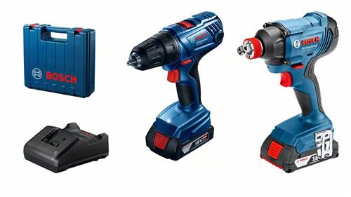 Akumulátorový rázový utahovák GDX 180-LI + GSR 180-Li 2× 2,0 Ah, Jediný rázový utahovák na trhu s dvojitým držákem bitů: utahování, šroubování a vrtání s jediným nářadím!, Utahování, šroubování a vrtání s jediným nářadím: Vybavené 1" šestihranným držákem bitů pro šroubování a vrtání a 1" čtyřhranným držákem pro utahování., Vysoký krouticí moment, velký počet příklepů a vysoké otáčky zajišťují rychlejší dokončení práce., Odolná konstrukce s robustní převodovkou, motor s otevřeným rámem a ochrana článků akumulátoru zaručují dlouhou životnost., 2× akumulátor GBA 18V 2.0Ah (1 600 A00 1CG); Nabíječka GAL 18V-20 Professional