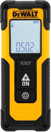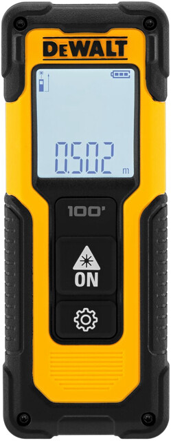 Laserový dálkoměr DeWALT DWHT77100 s rozsahem měření 30m výpočtem plochy a objemu a výpočtem podle Pythagorovy věty.