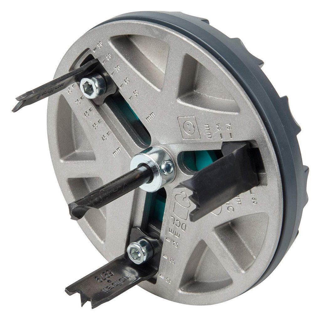 Pro řezání různých průměrů během rekonstrukce a vnitřní prácích, nastavitelné ve třech krocích: uvolněte, synchronizujte a upevněte;