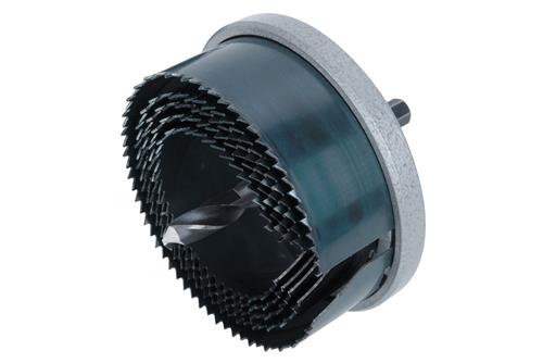 Pro dřevo, sádrokartonové desky, stavební desky, kovové tělo, včetně: 1 x centrovací vrták, průměr 10 mm, 5 x rychlovýměnné pilové kotouče. ELN1040 EAN: 4006885216204