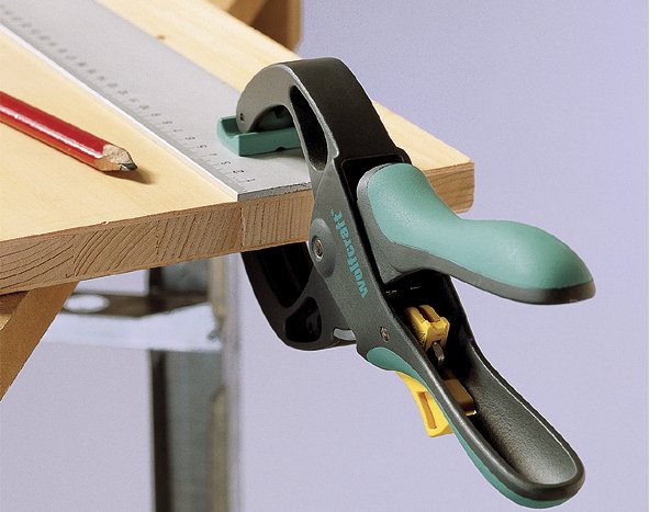 Pro citlivé upnutí šetřící obrobek a zároveň pro silné spojení až dvojnásobnou upínací silou oproti běžným pružinovým svěrkám, zahnuté čelisti pro optimální rozložení síly a maximální upínací rozsah, pohyblivé, materiál šetřící upínací čelisti s dvojitou drážkou pro upnutí kruhových materiálů, speciální plast zpevněný sklolaminátem, bezpečné držadlo díky protiskluzovému povrchu, upínací rozsah 50 mm.