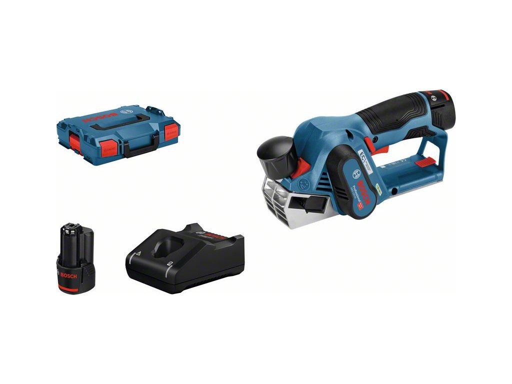 Svoboda bez kabelů: Nejlepší ovládání v každé pracovní pozici díky prvnímu 12V hoblíku od firmy Bosch, L-BOXX 136 (1 600 A01 2G0); Rychlonabíječka GAL 12V-40 Professional (1 600 A01 9R3); 2× hoblovací nůž, 56 × 5,5 × 1,1 mm (2 608 000 672); 2× akumulátor GBA 12V 3.0Ah (1 600 A00 X79)