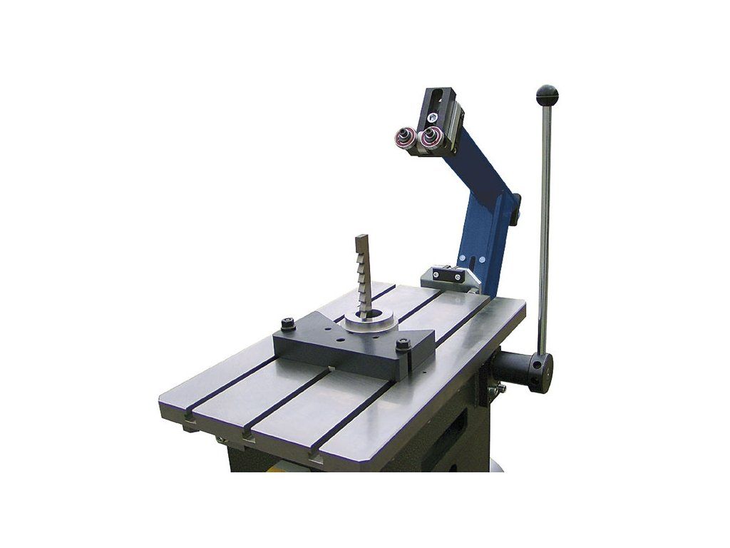 Stroj určený pro maloseriovou i zakázkovou výrobu vnitřních i vnějších průchozích drážek pro pera a klíny do nábojů řemenic, ozubených kol apod.