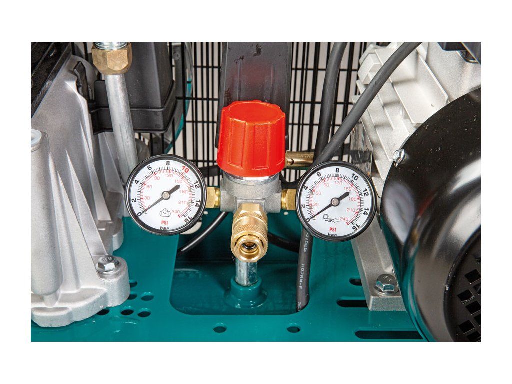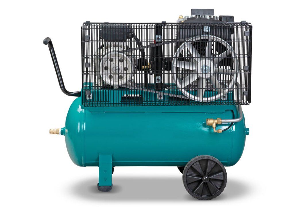 Pojízdný kompresor s osvědčeným pohonem pomocí klínového řemene a dvouválcovým, vysoce výkonnými agregátem z ekonomické řady pro montáž, domácí dílnu a hobby.