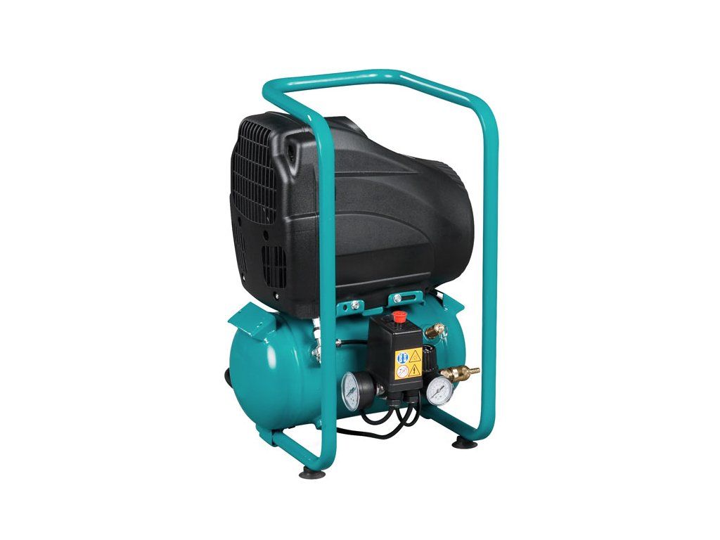 Univerzálně použitelný bezolejový mobilní kompresor z ekonomické řady, použitelný např. v domácích dílnách nebo při montážích.